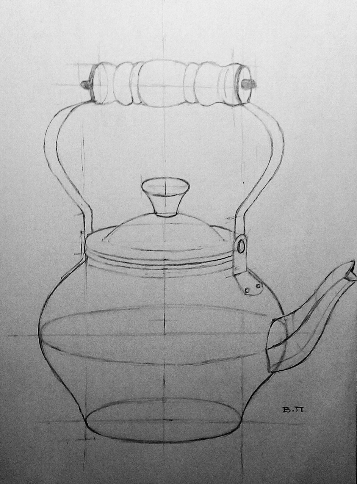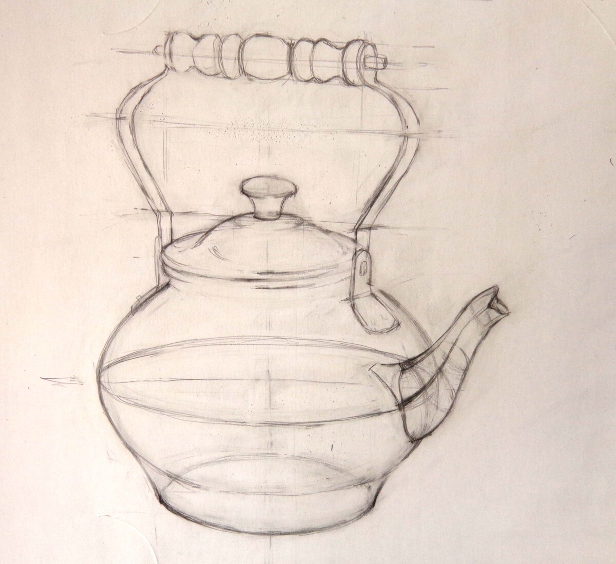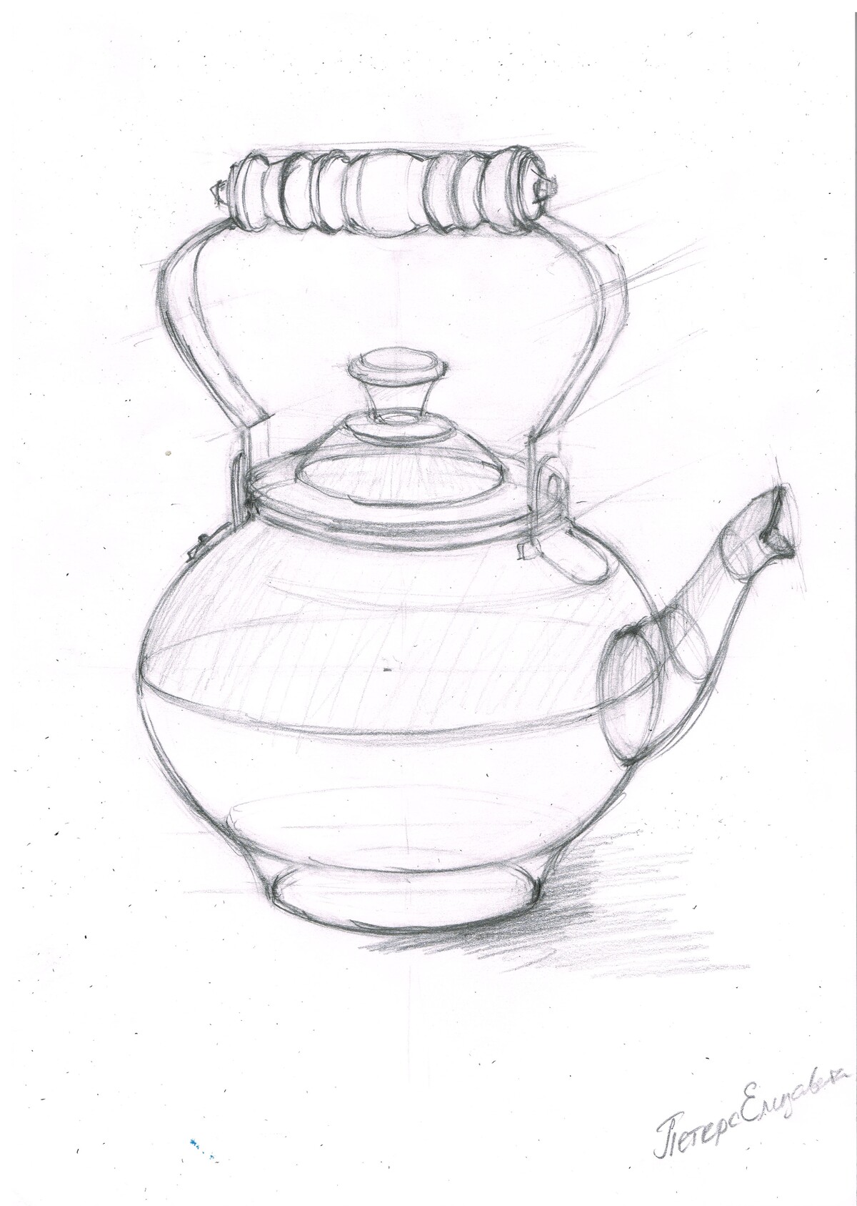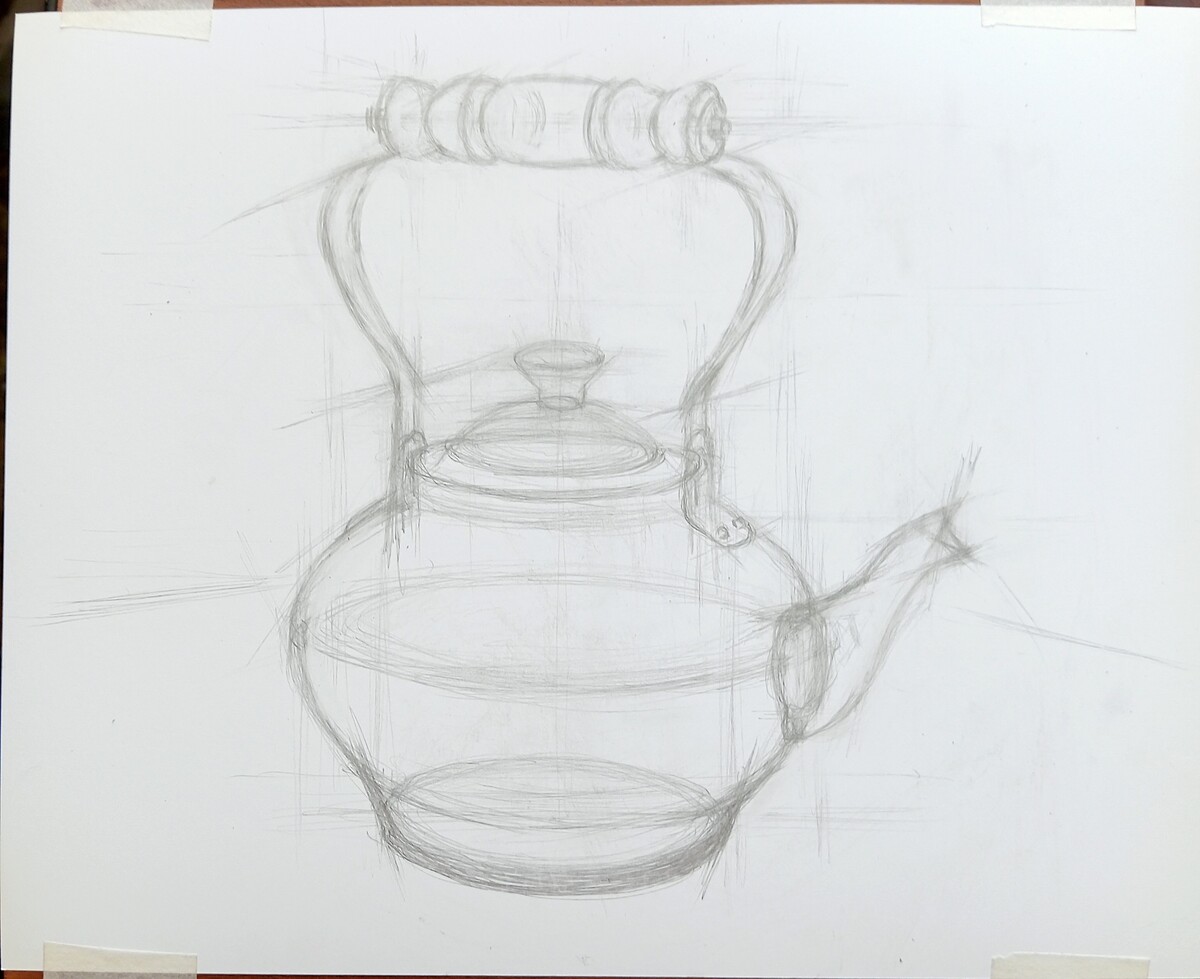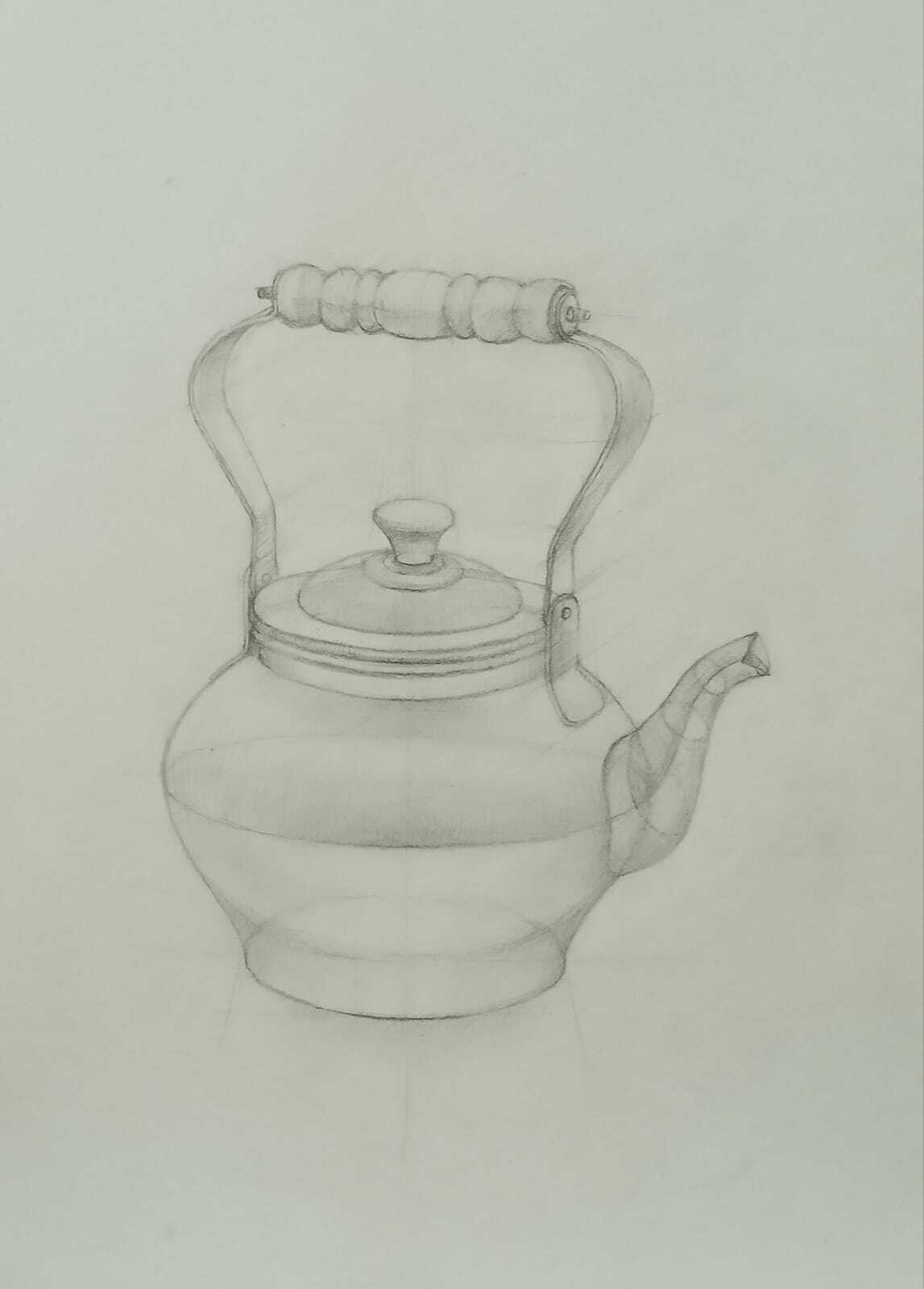 МЕДНЫЙ ЧАЙНИК. РИСУНОК КАРАНДАШОМ СО СРЕДНЕЙ ЛИНИЕЙ ГОРИЗОНТА