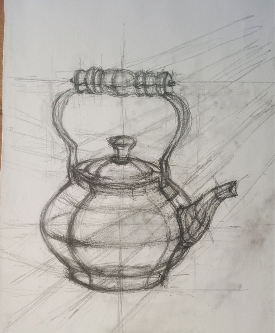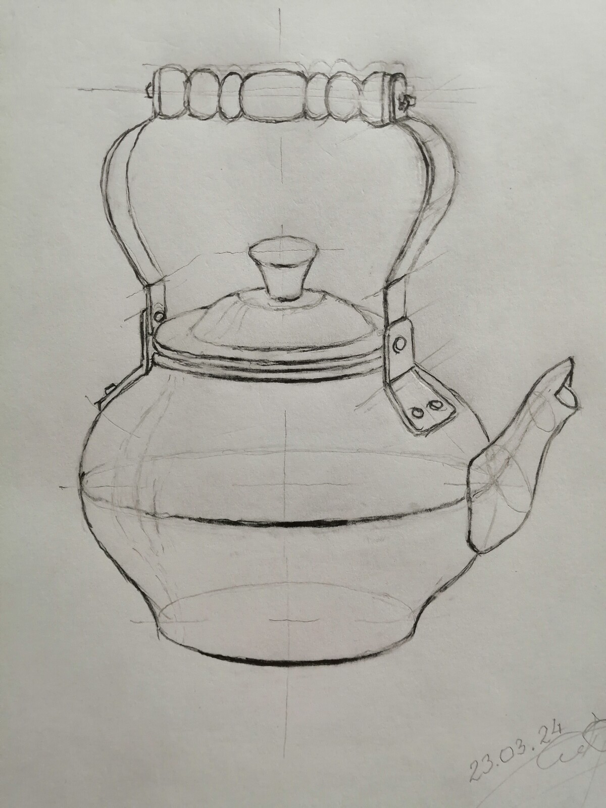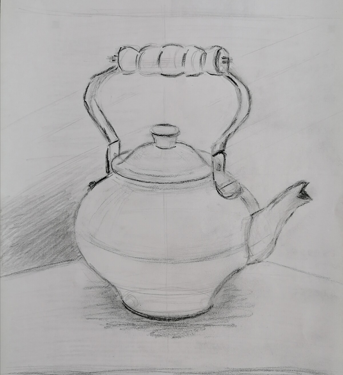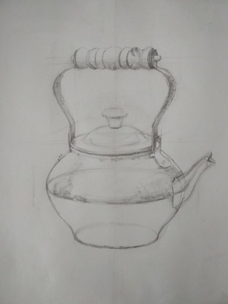 МЕДНЫЙ ЧАЙНИК. РИСУНОК КАРАНДАШОМ СО СРЕДНЕЙ ЛИНИЕЙ ГОРИЗОНТА