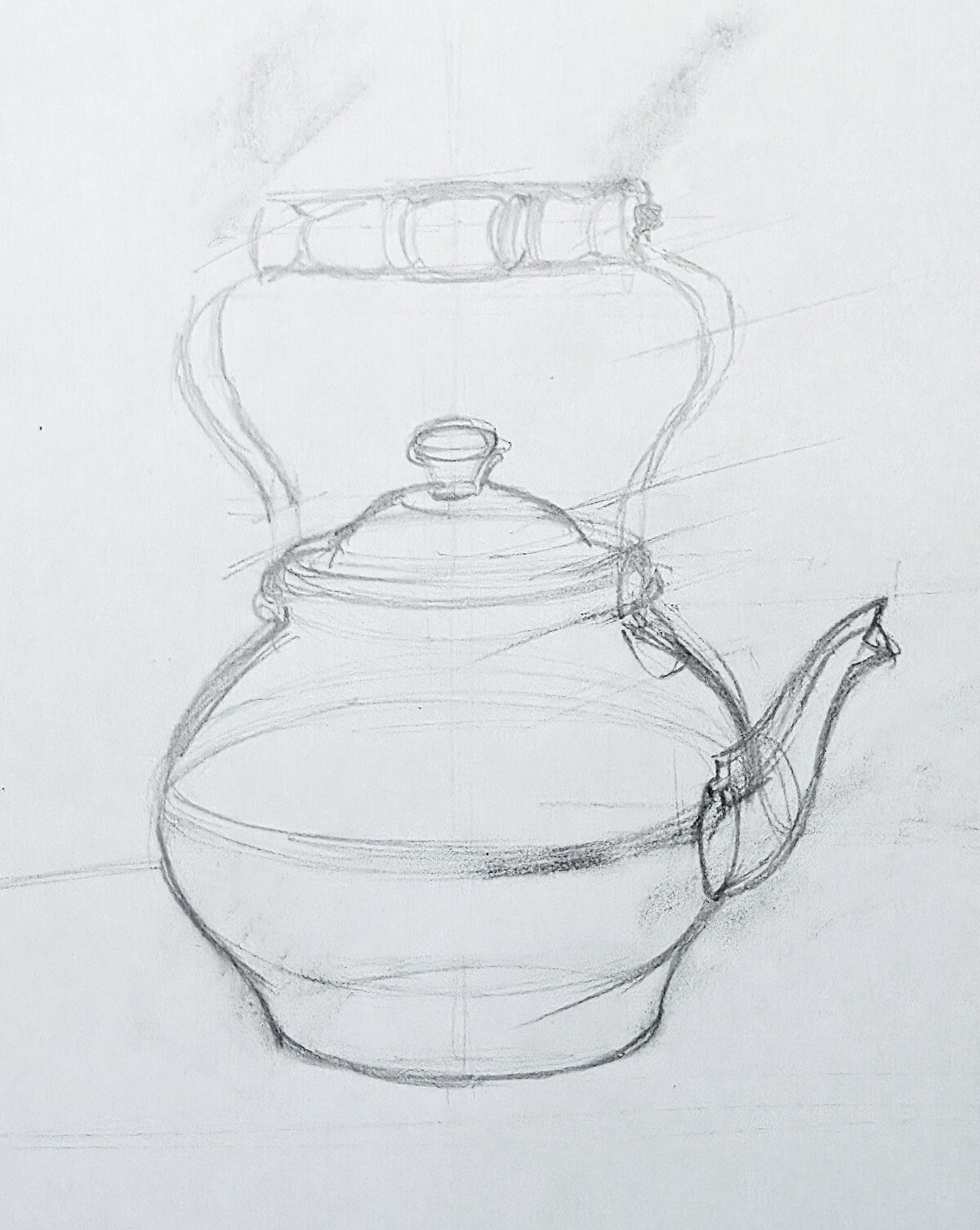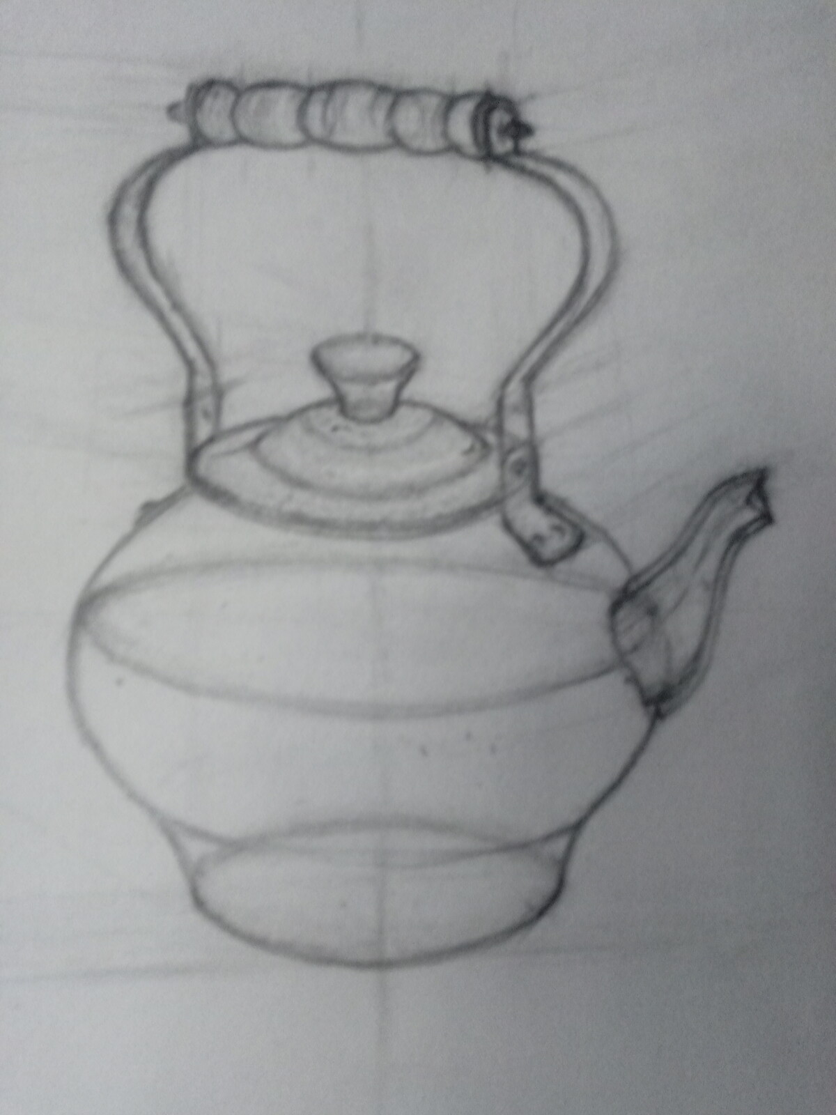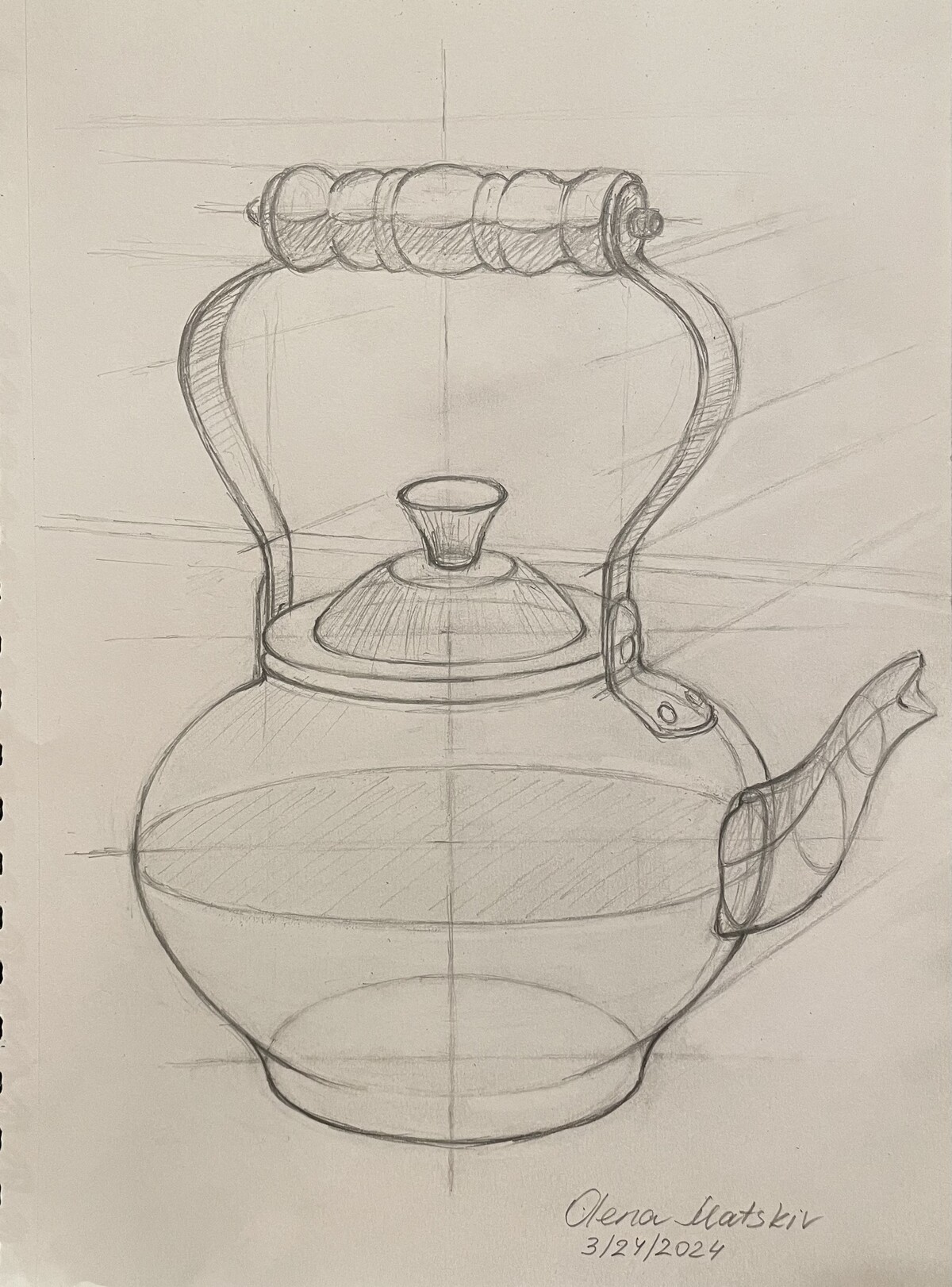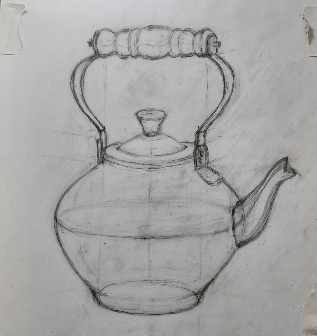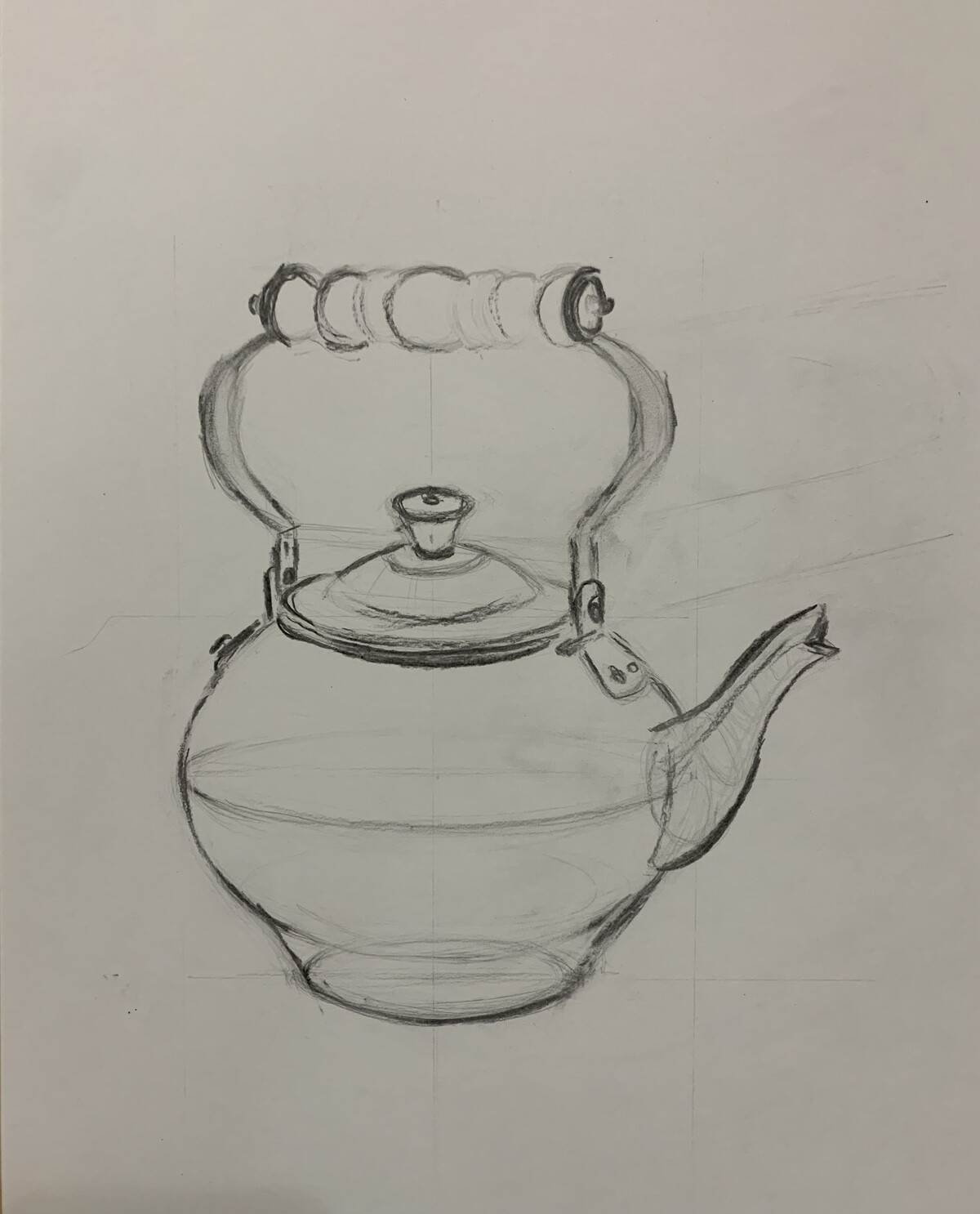 МЕДНЫЙ ЧАЙНИК. РИСУНОК КАРАНДАШОМ СО СРЕДНЕЙ ЛИНИЕЙ ГОРИЗОНТА