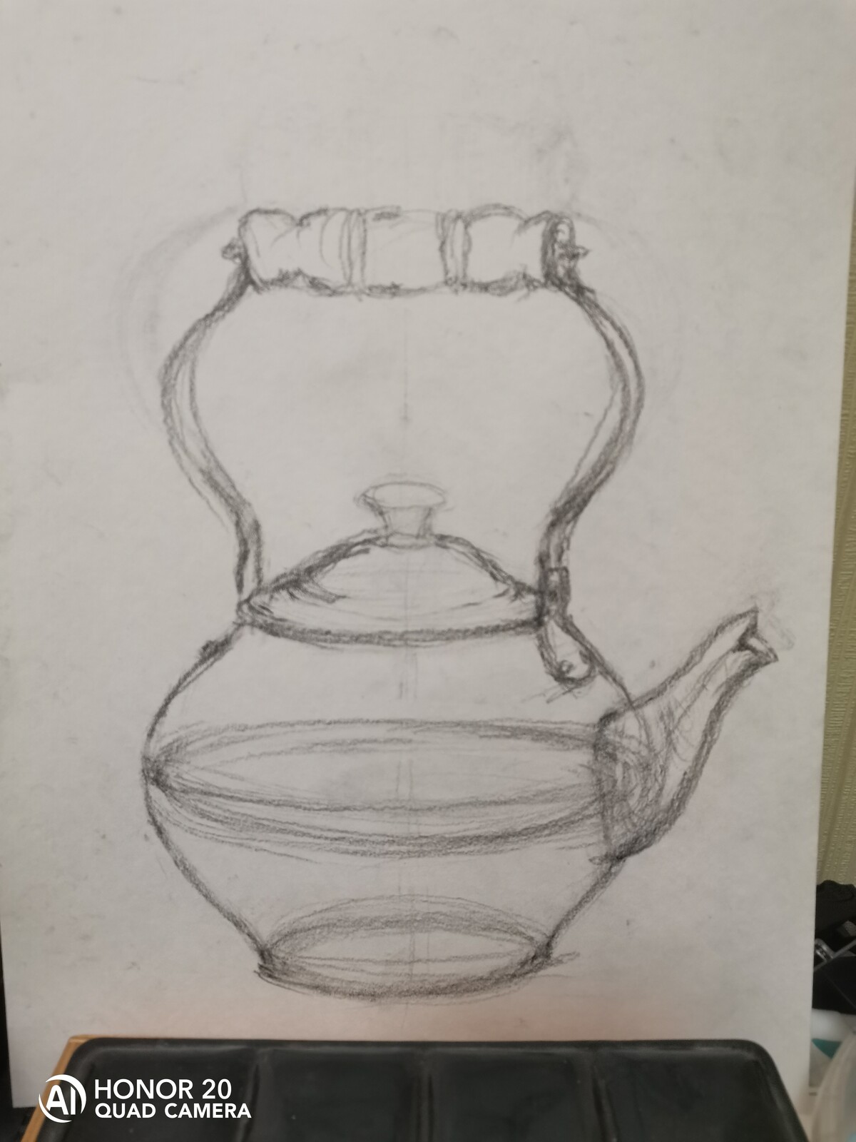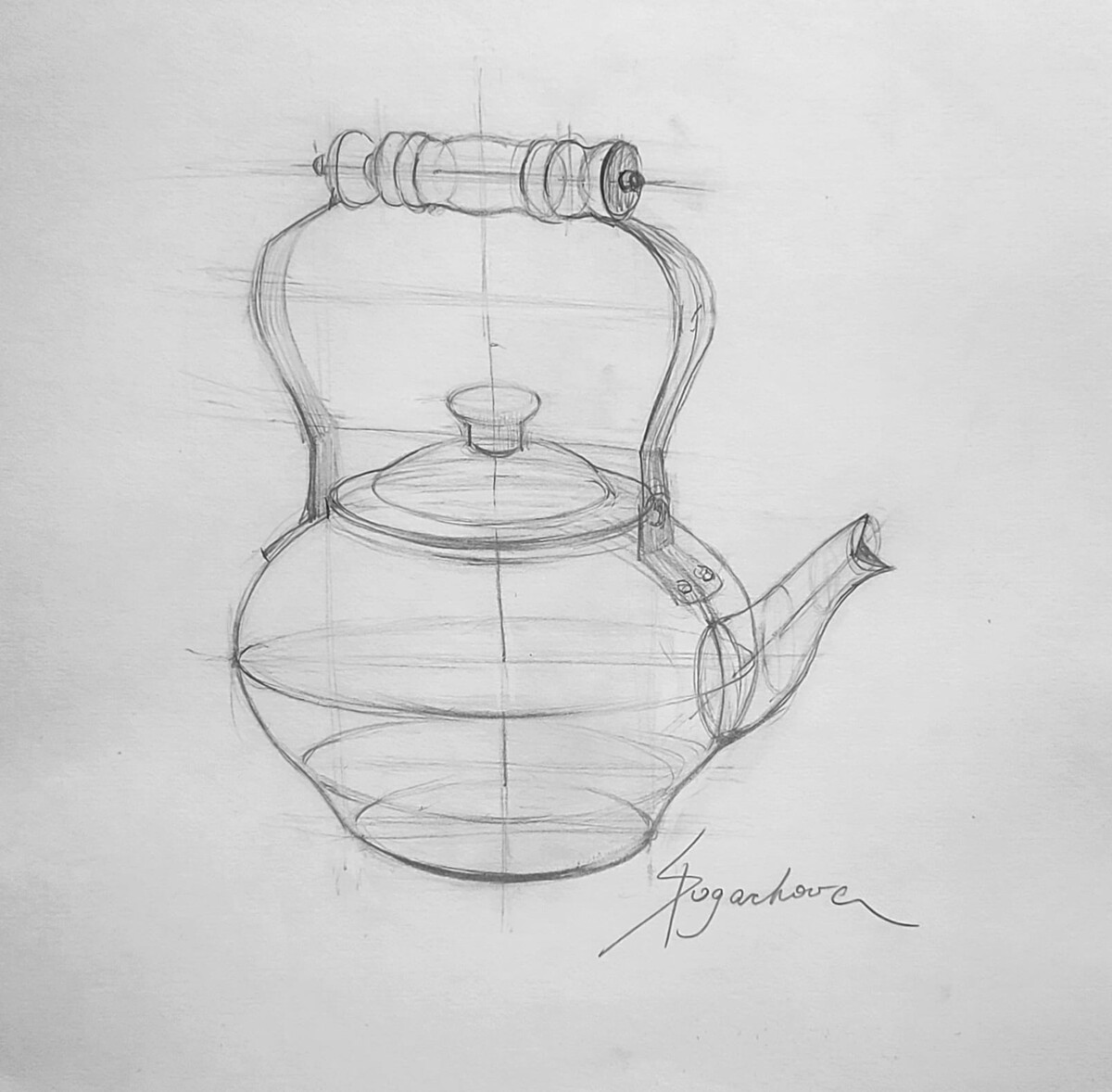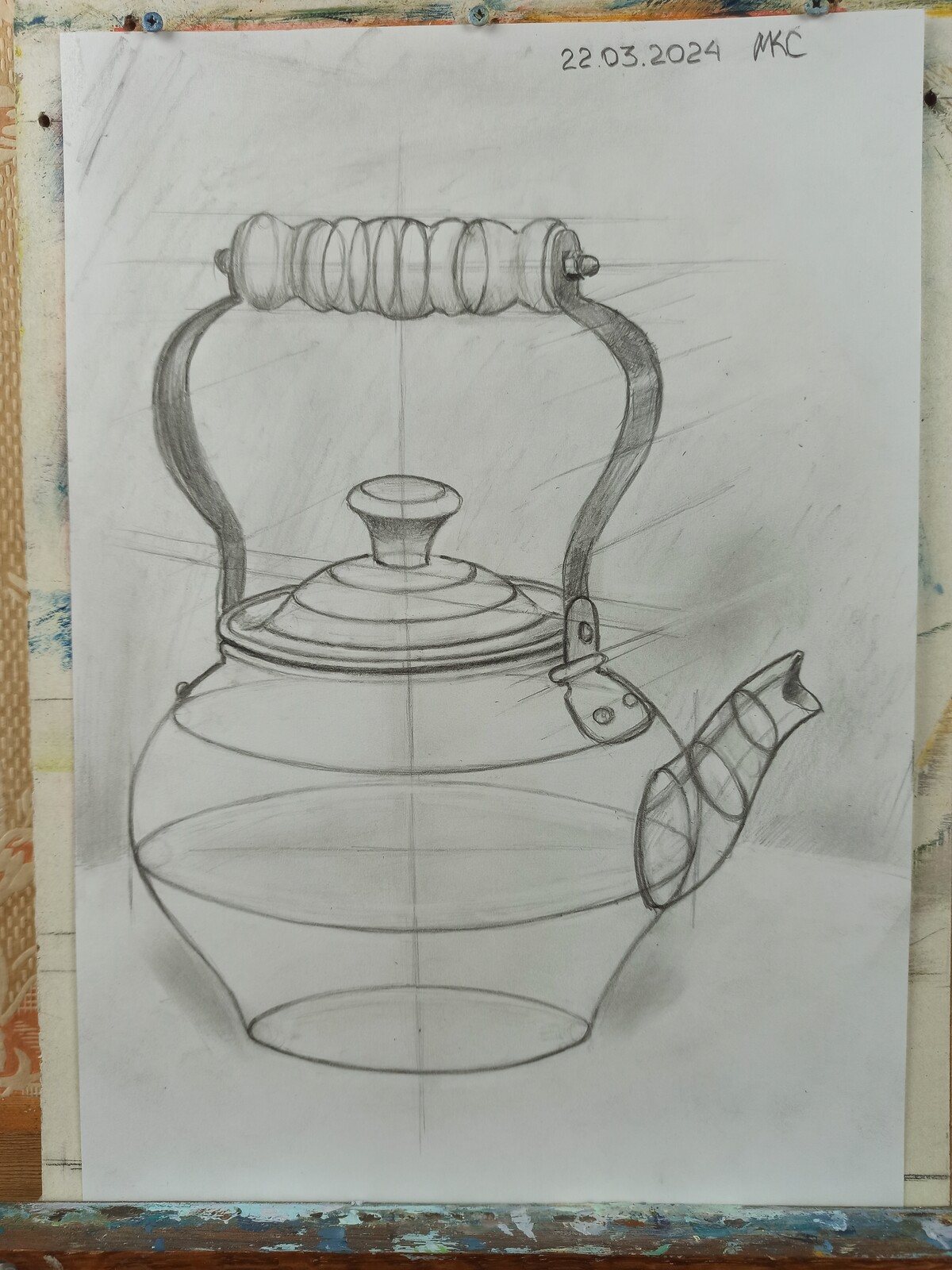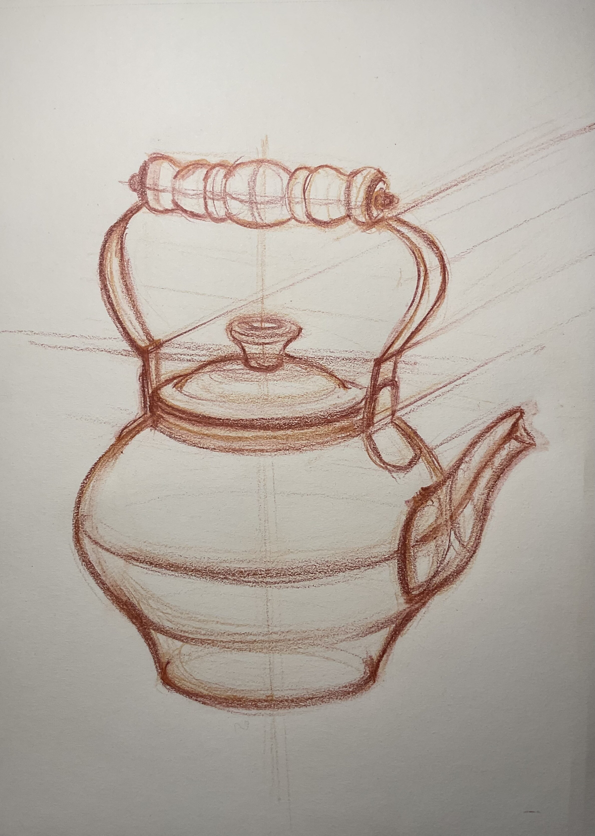 МЕДНЫЙ ЧАЙНИК. РИСУНОК КАРАНДАШОМ СО СРЕДНЕЙ ЛИНИЕЙ ГОРИЗОНТА