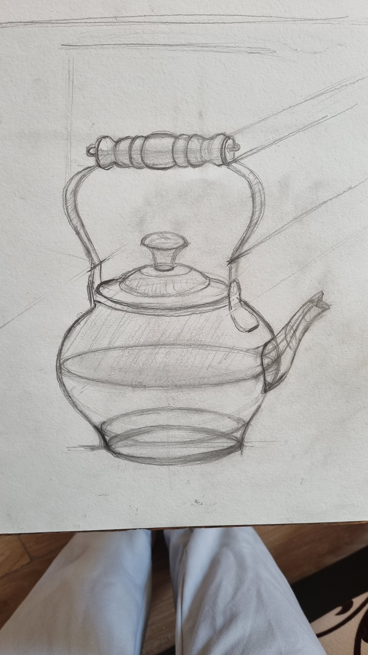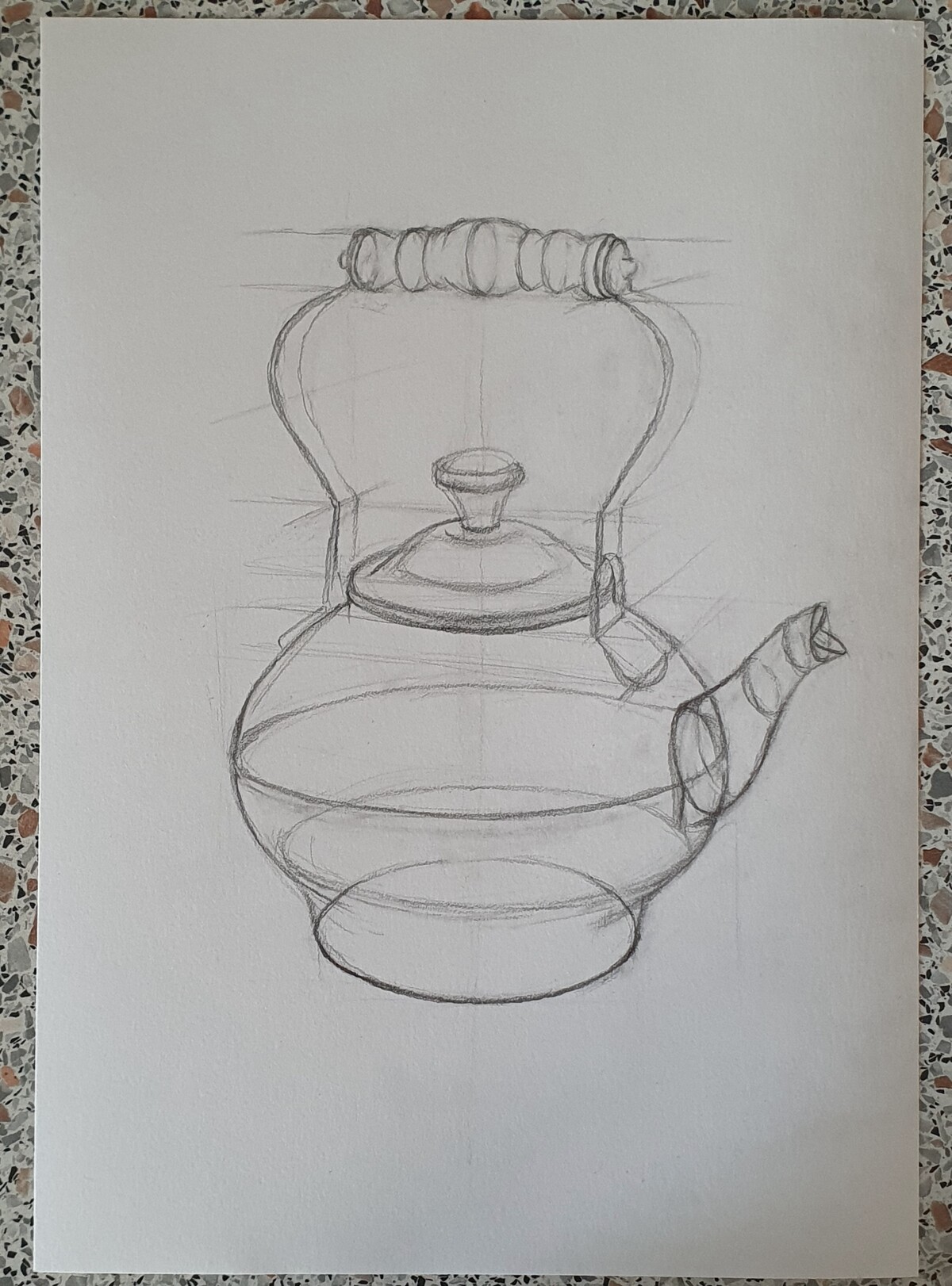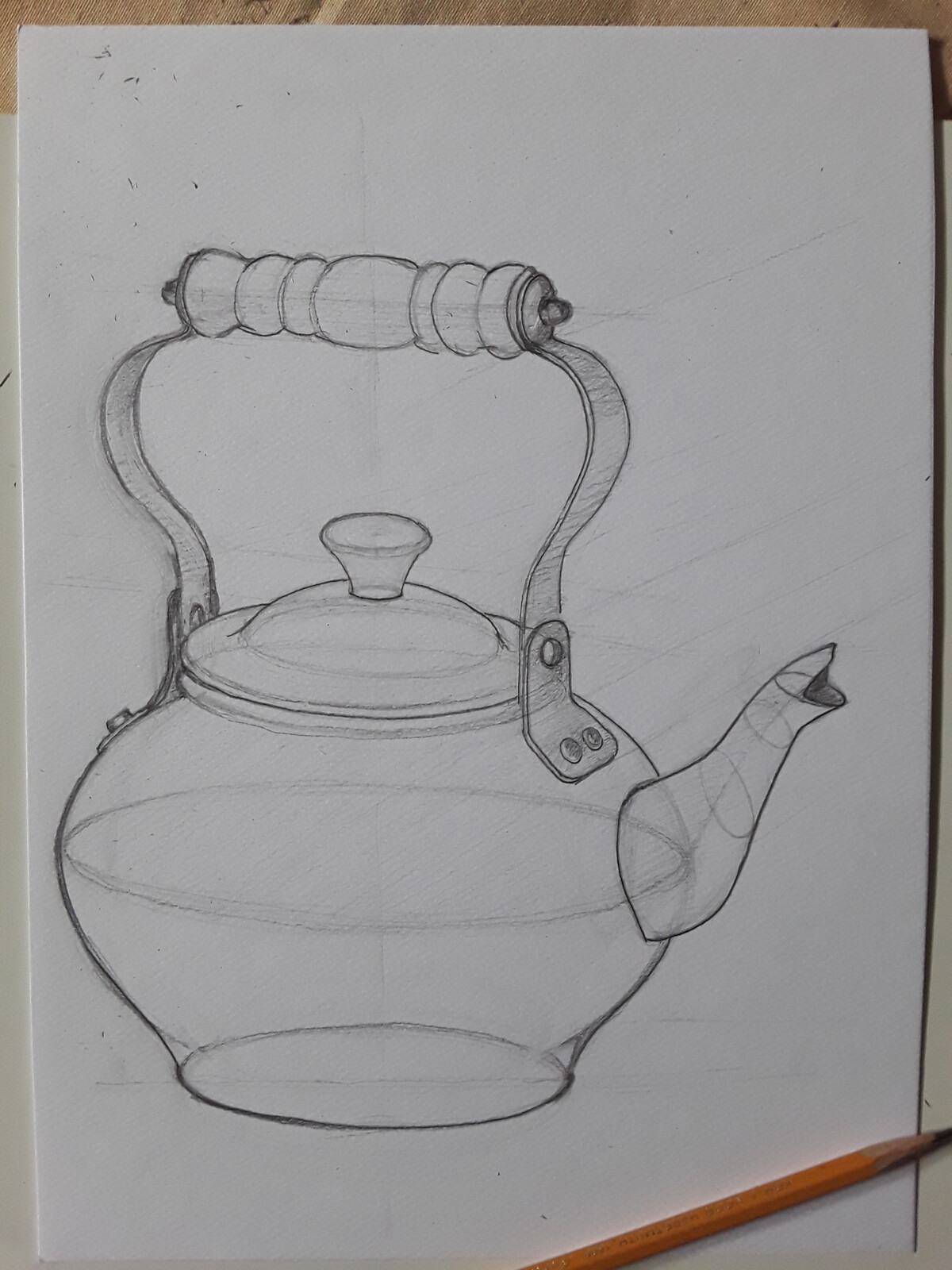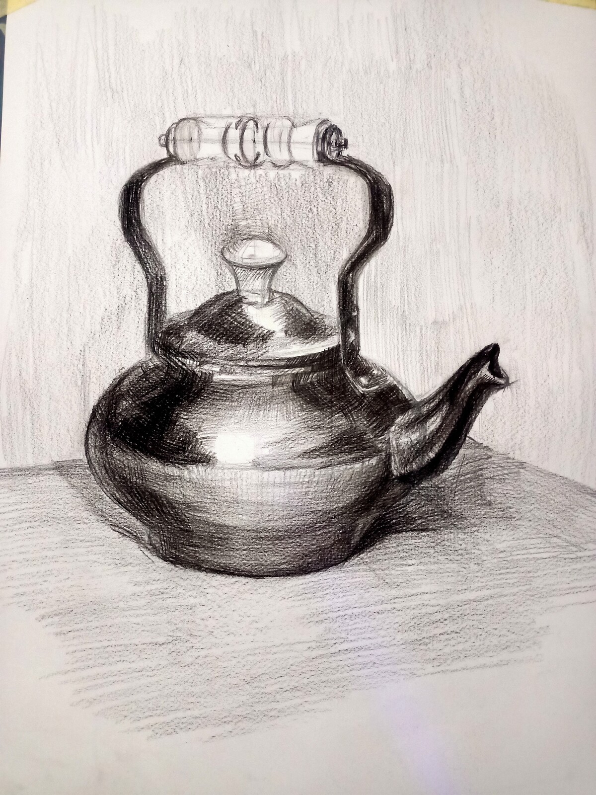 МЕДНЫЙ ЧАЙНИК. РИСУНОК КАРАНДАШОМ С ВЫСОКОЙ ЛИНИЕЙ ГОРИЗОНТА