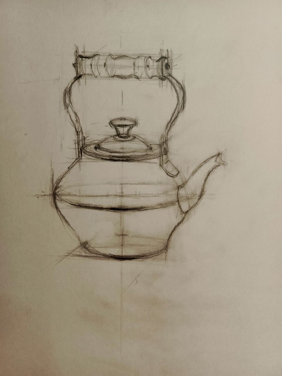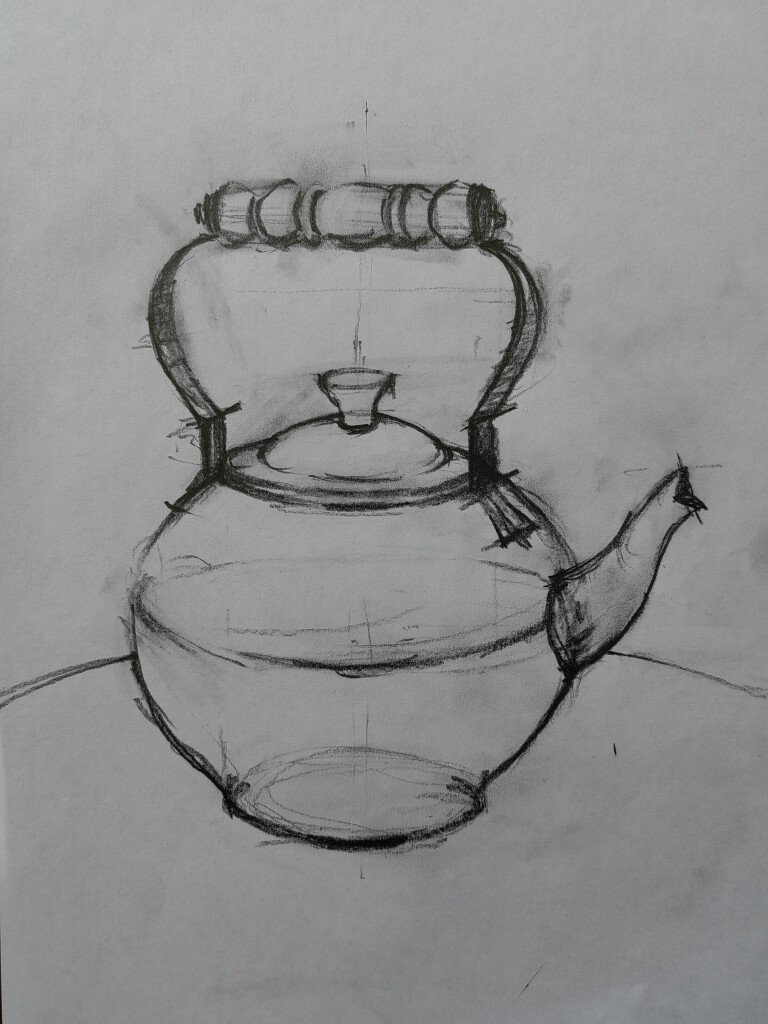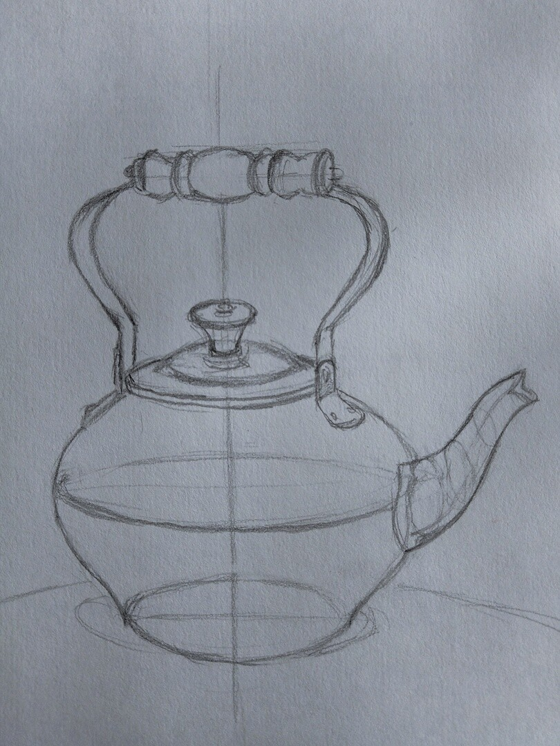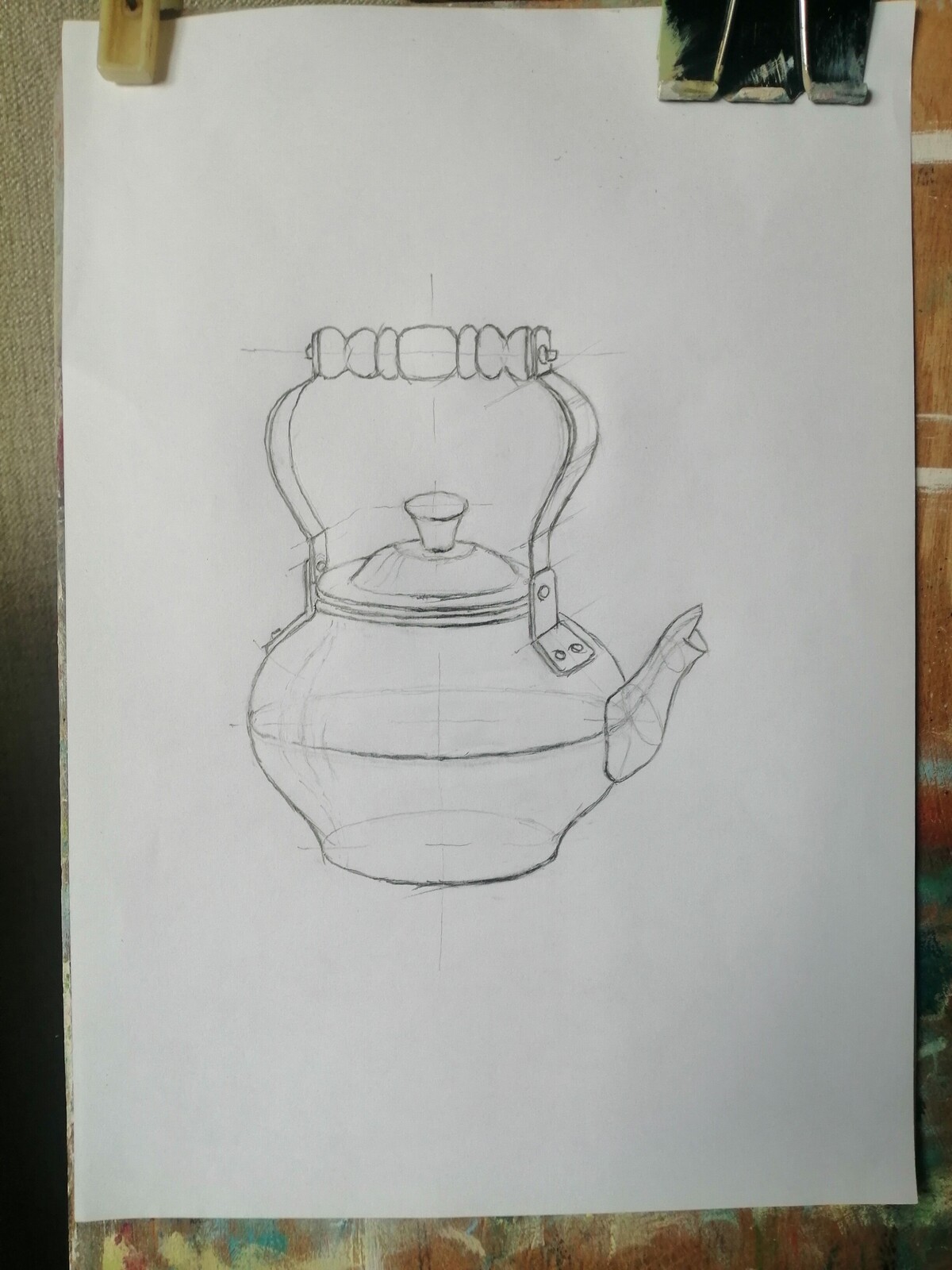 Кажется - просто чайник, а мой оказался далеко не так и прост и вовсе не симметричен.. ведь правильный рисунок просто необходим для будущей картины маслом! Поняла, что надо больше внимания уделять таким предварительным эскизам.