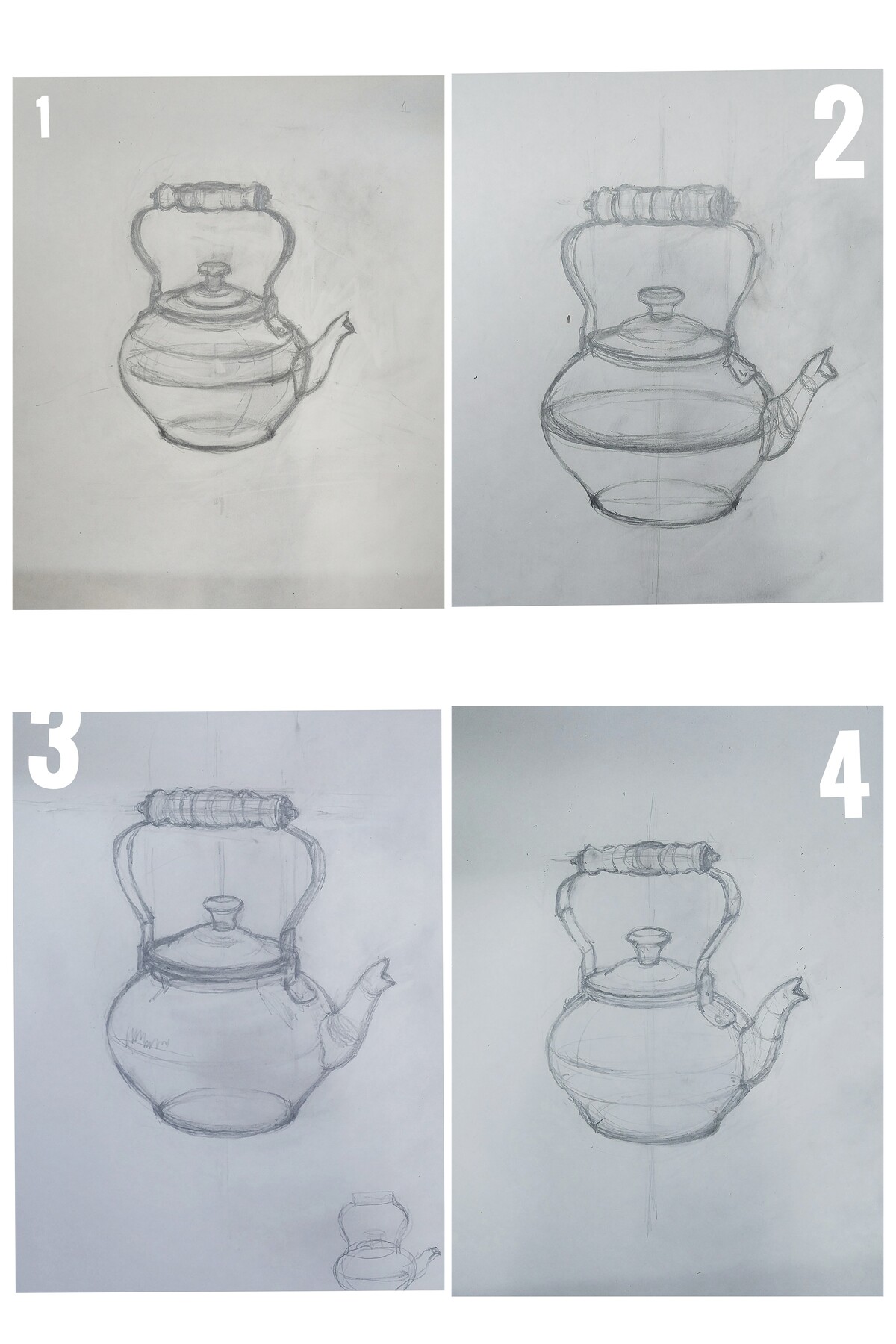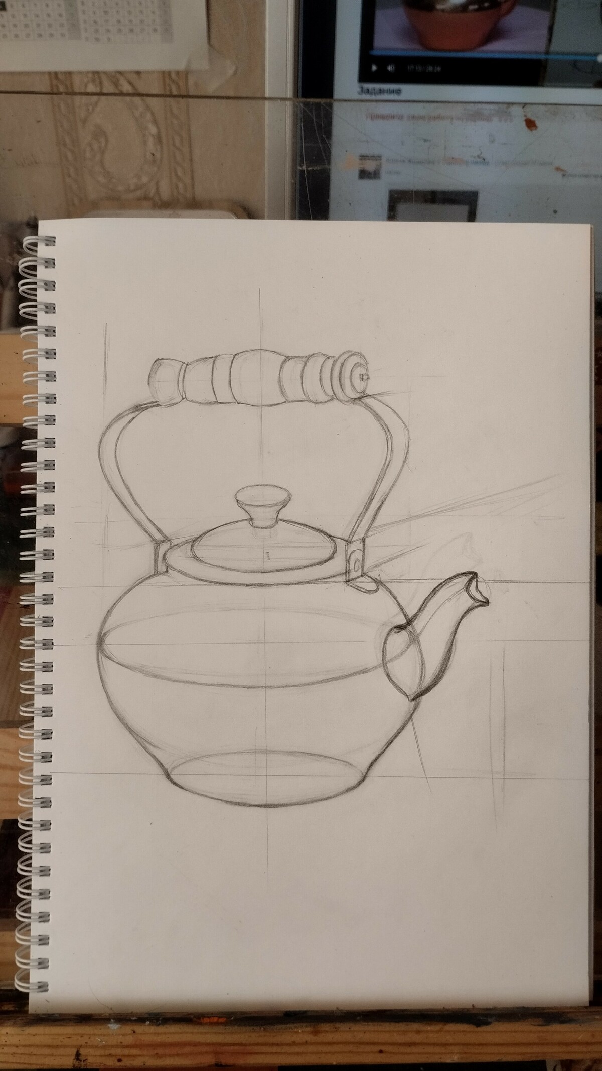 2) Практический урок рисования медного чайника карандашом.