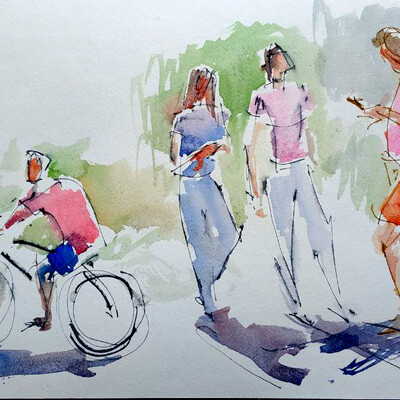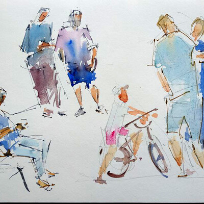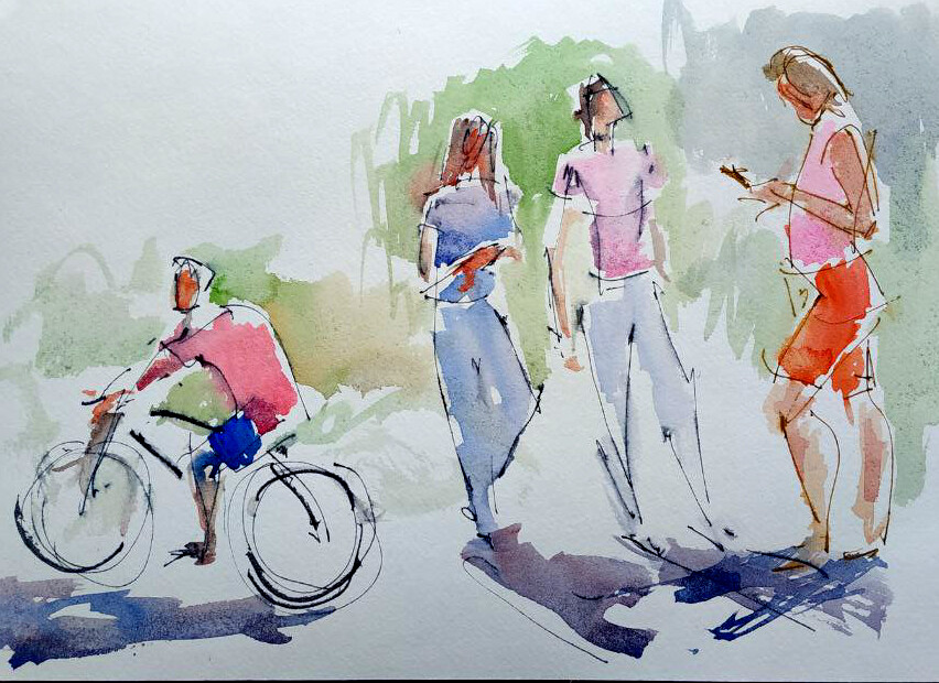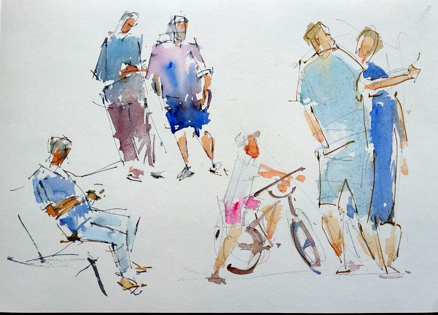 Наброски акварелью людей. Изучение структуры формы фигур человека